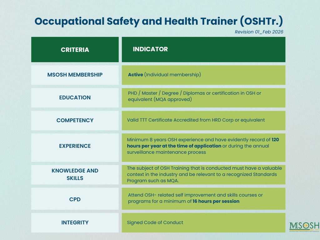 Occupational Safety and Health Trainer (OSHTr.)