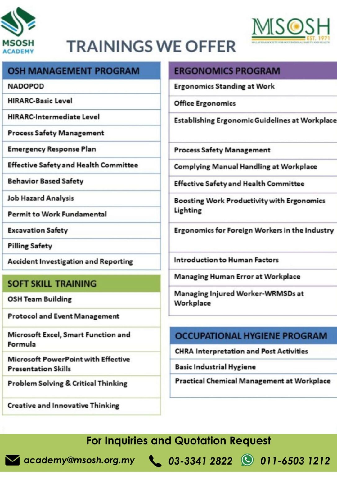 List Of In-house Training